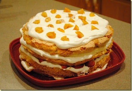 Filled cake, layer cake soaked with milk or fruit juice and filled with whipped cream and fruit, for example, strawberries, blueberries, raspberries, kiwi, peaches, pineapple